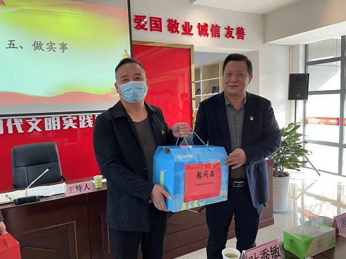 黨日活動圍繞唱國歌、重溫入黨誓詞、誦黨章、學(xué)先進、做實事、講黨課六項內(nèi)容開展。全體黨員在集團黨委領(lǐng)導(dǎo)的帶領(lǐng)下齊唱國歌、重溫入黨誓詞;優(yōu)秀黨員代表丁徐磊同志誦讀了《黨章》總綱,城投黨支部朱敏明介紹優(yōu)秀黨員、三季度“最美耀安人”—張慶同志的先進事跡;姚董代表集團公司向結(jié)對共建的義安社區(qū)困難群眾贈送了慰問品,義安社區(qū)負(fù)責(zé)人代表受助的三戶困難戶向耀安集團黨委致以真誠感謝。參加活動的黨員同志們認(rèn)真聆聽黨章內(nèi)容和先進事跡,并紛紛表示要向先進黨員學(xué)習(xí),不斷提高工作能力和業(yè)務(wù)水平,在擔(dān)當(dāng)作為中踐行初心使命,為集團建設(shè)發(fā)展貢獻力量。