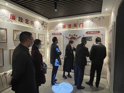 廉政教育中心通過大量圖片、文字、視頻資料,以文施教,以圖示警,全方位展示了天門鎮(zhèn)從古至今在反腐敗倡廉潔方面的成果。在講解員的帶領下,黨員干部們觀看了《白姜清廉》的廉潔教育視頻,并學習了廉政勤政的先進典型事跡,欣賞了廉潔主題的藝術作品,大家的思想和內(nèi)心深受感觸和教育。