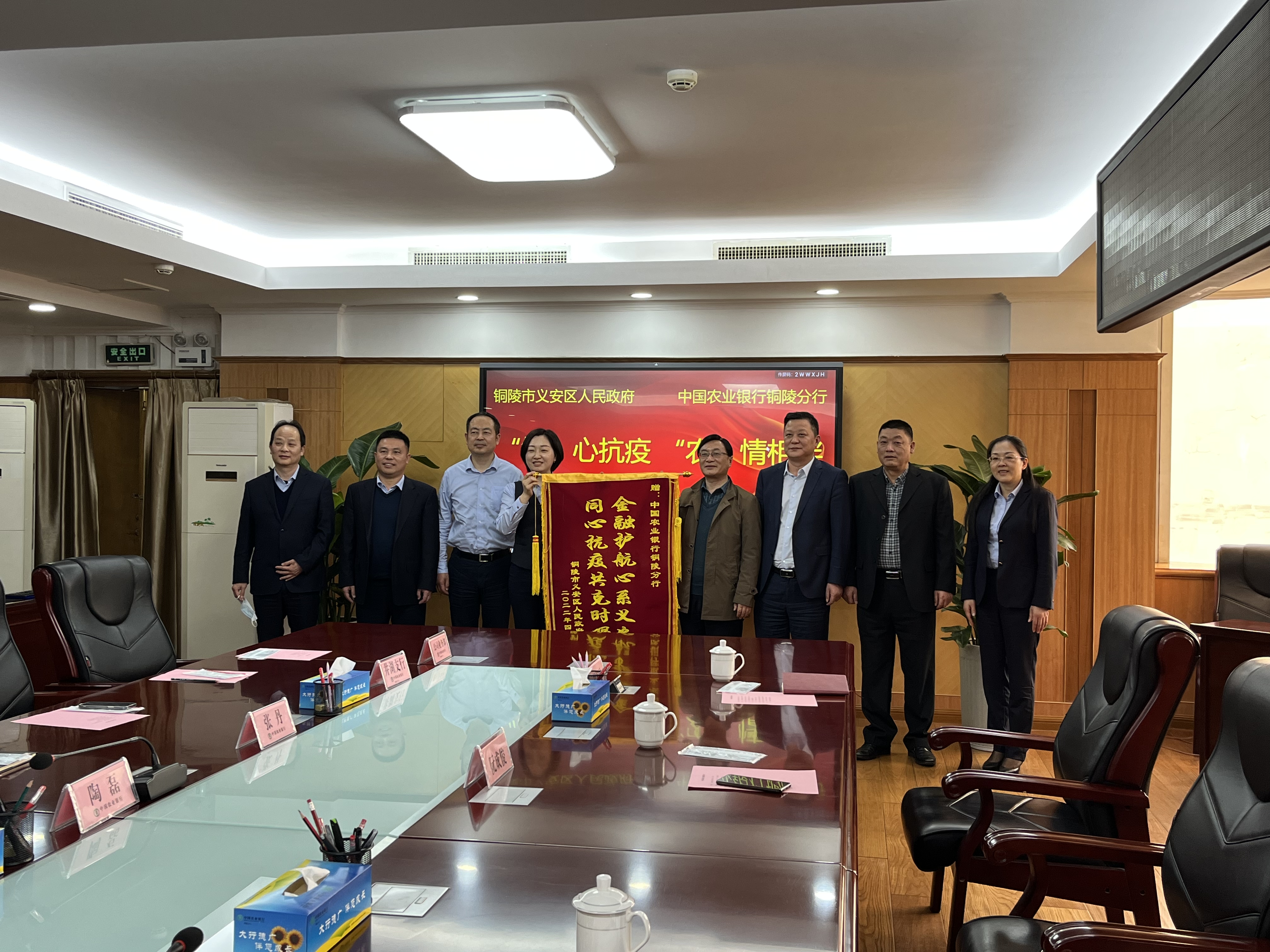 2022年4月6日上午,義安區(qū)政協(xié)副主席、區(qū)地方金融局局長劉一珉攜耀安集團一行受義安區(qū)政府委托,向中國農(nóng)業(yè)銀行銅陵分行送上“金融護航心系義安,同心抗疫共克時艱”的錦旗。