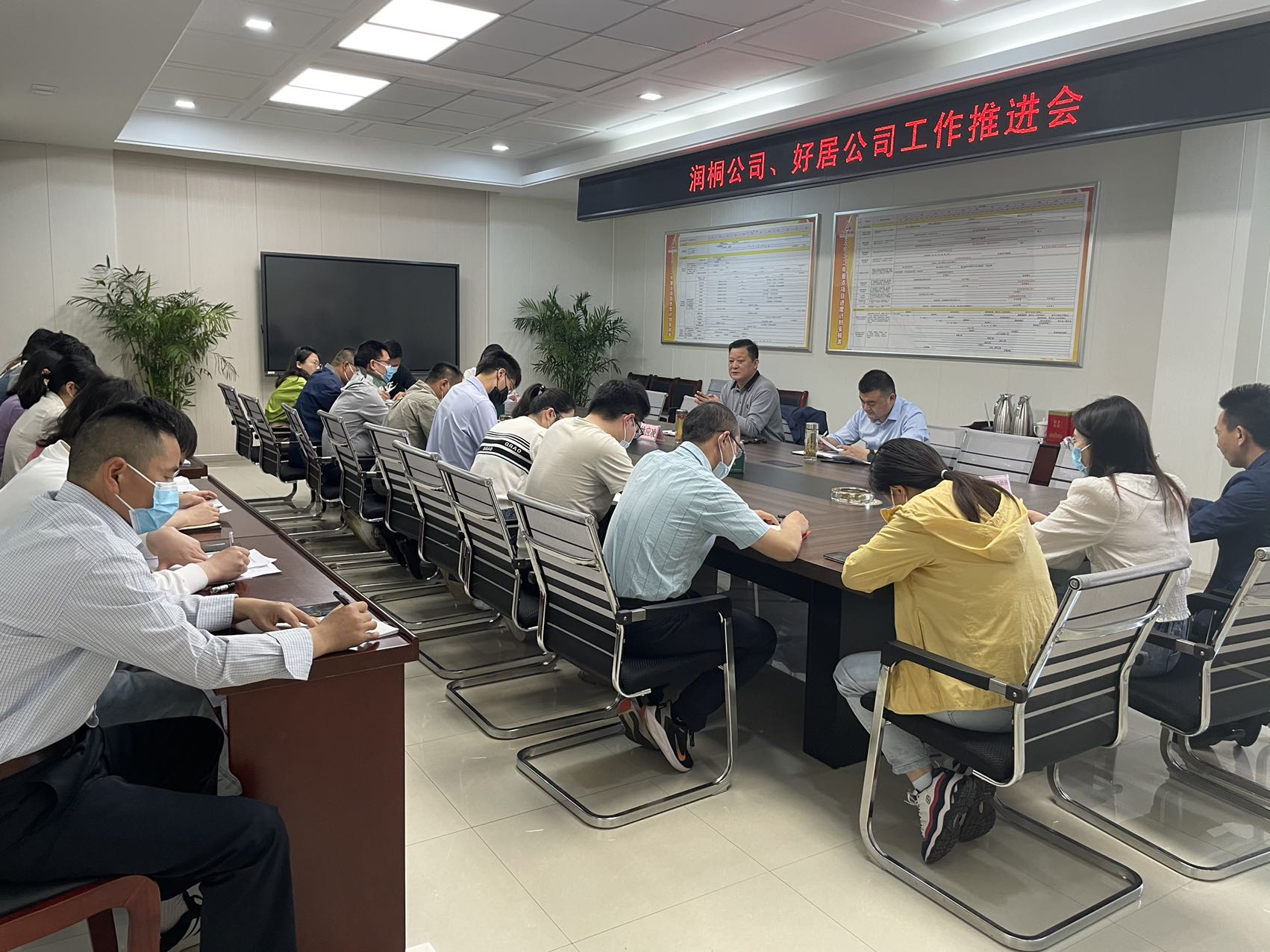 4月11日上午,潤桐公司、好居公司工作推進會于集團三樓會議室召開,會議由集團董事長姚應凌主持,集團公司副總經(jīng)理衛(wèi)楊,集團財務部、綜合部、項目部相關(guān)工作人員,潤桐公司、好居公司全體成員參會。