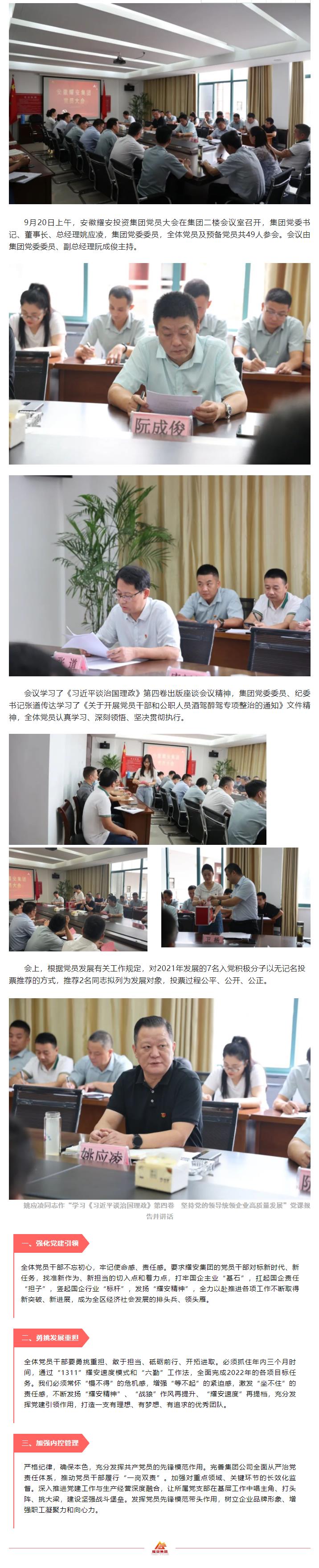 耀安集團召開全體黨員大會