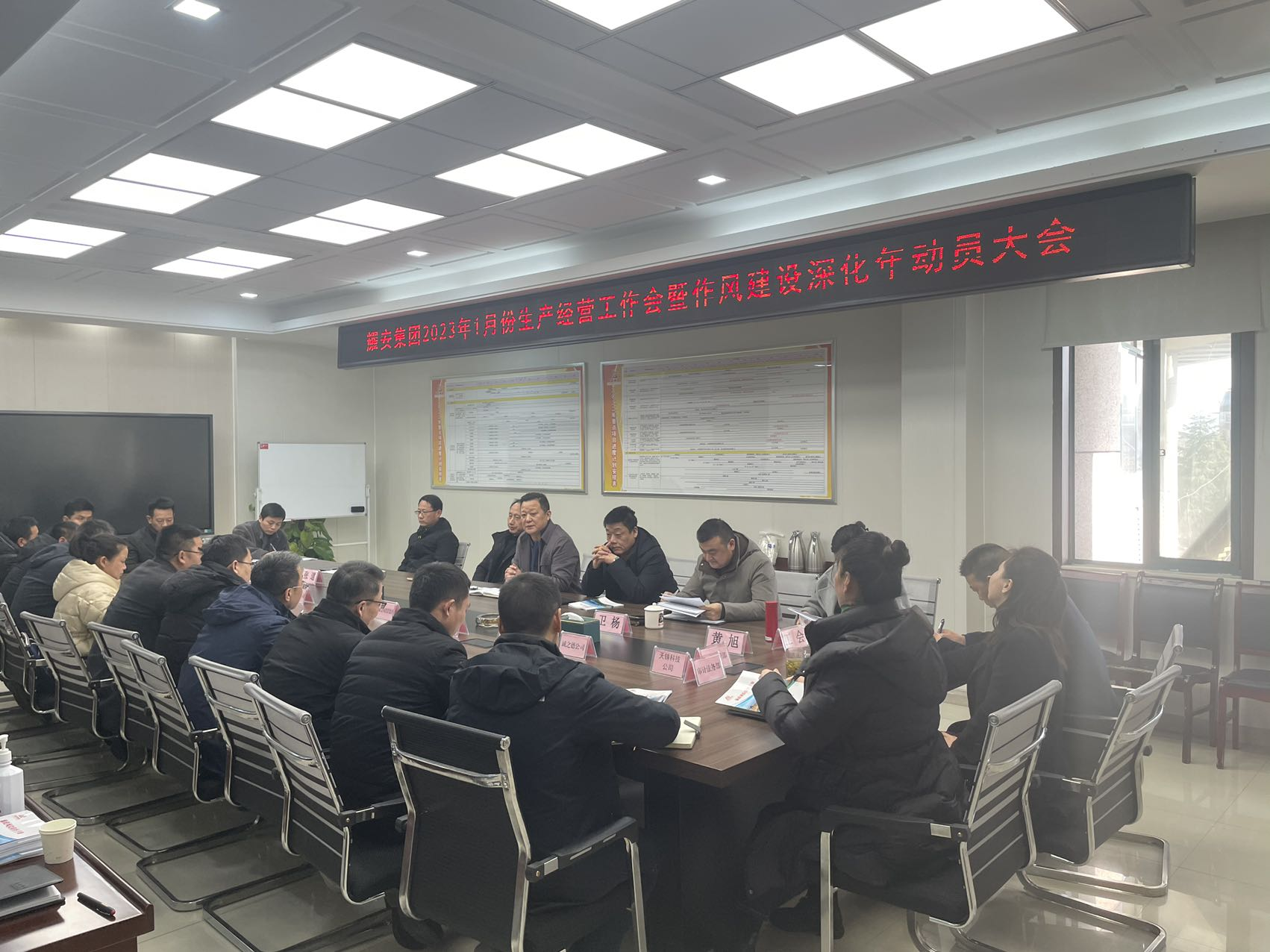 1月29日下午,安徽耀安投資集團(tuán)董事長(zhǎng)姚應(yīng)凌主持召開集團(tuán)2023年第一次生產(chǎn)經(jīng)營(yíng)工作會(huì)議暨作風(fēng)建設(shè)深化年動(dòng)員大會(huì),集團(tuán)領(lǐng)導(dǎo)班子成員,集團(tuán)工會(huì)、各部門、二級(jí)子公司與控股公司負(fù)責(zé)人員參加。