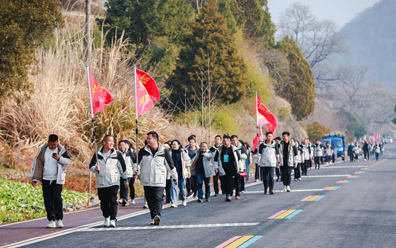 12月30日安徽耀安集團(tuán)2023年度“凝心聚力、拓夢前行”活動順利舉辦。經(jīng)過一年工作的忙碌,在收獲和喜悅中,我們即將送走2023,迎來嶄新的2024,在這一年的片尾,集團(tuán)約180名員工積極參加本次毅行活動,大家沿著九鳳路風(fēng)景廊道一路前行,途徑金山、繆村、龍?zhí)缎さ蕊L(fēng)景區(qū),感受2023年我們?yōu)榇怂冻龅男难俺晒?/span>沿線欣賞自然風(fēng)光,在歡聲笑語中增進(jìn)同事間的感情與團(tuán)結(jié)互助的能力。