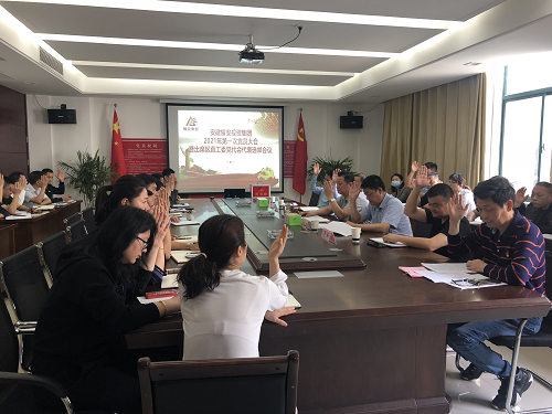 2021年5月18日上午,耀安集團(tuán)黨委2021年第一次黨員大會(huì)暨選舉區(qū)直工委黨代會(huì)代表會(huì)議在集團(tuán)二樓會(huì)議室召開(kāi)。會(huì)議由集團(tuán)黨委委員、副總經(jīng)理阮成俊同志主持,集團(tuán)黨委書記、董事長(zhǎng)兼總經(jīng)理姚應(yīng)凌同志參會(huì)并講話,集團(tuán)全體正式黨員和預(yù)備黨員共40余人參加會(huì)議。