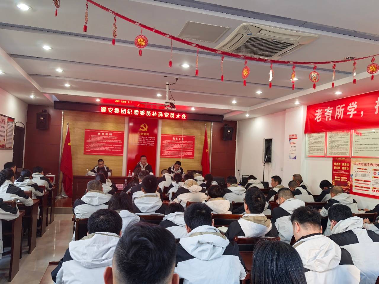 10月24日下午,經(jīng)區(qū)委組織部批準,耀安集團黨委召開黨員大會,增補紀委委員4名。會議由集團黨委副書記阮成俊主持,黨委書記姚應(yīng)凌出席會議并講話,集團公司共59名黨員參加。